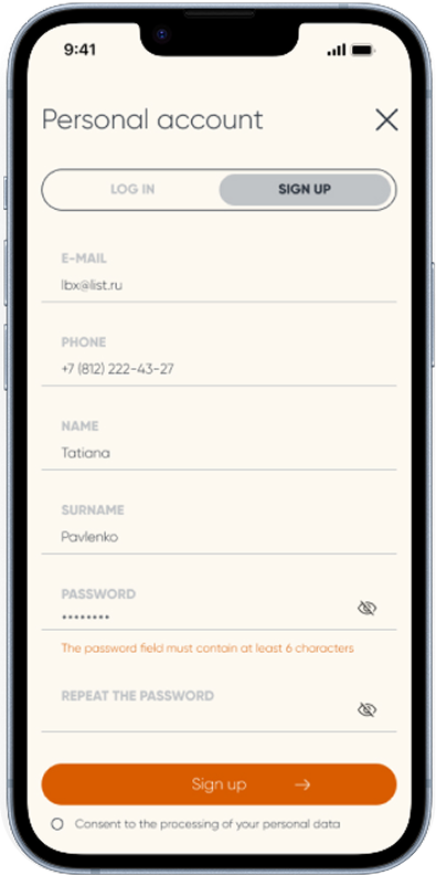 Я предложила максимально простой процесс регистрации — по номеру телефона. Однако из-за ограничений бюджета на СМС клиент выбрал стандартную регистрацию по email.